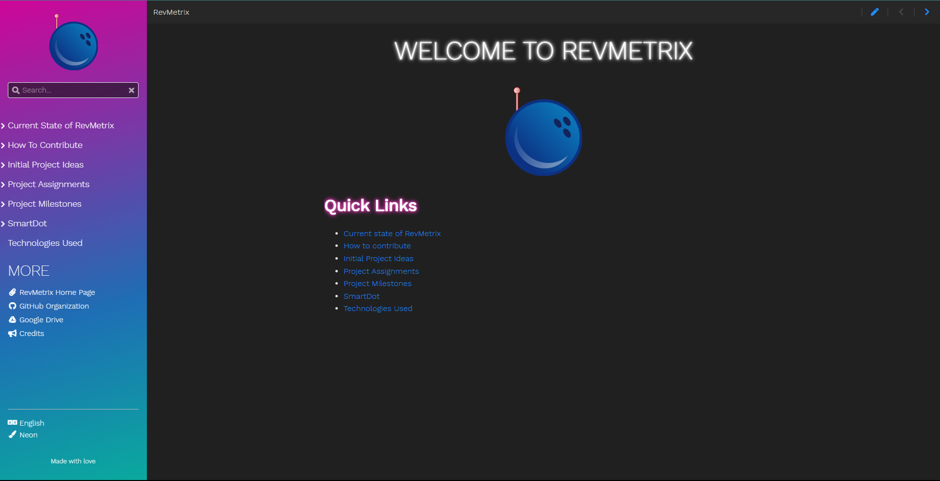RevMetrix pioneers a fully integrated system for bowling analytics, introducing the groundbreaking SmartDot module and Ciclopes program, developed by Professor Hake and Dr. Babcock respectively. The SmartDot module provides internal monitoring of the bowling ball while the Ciclopes program provides an external view as it travels down the lane. Unlike existing solutions relying on cameras and mobile applications, RevMetrix stands out by combining the unique capabilities of the SmartDot module with sophisticated analytical tools. One key innovation is the integration of a SmartDot and visual simulation, designed to provide users with a clear visualization of the data and emulate the provided metrics. This offers bowlers, particularly professionals, aspiring professionals and coaches, a comprehensive tool for skill enhancement and data-driven insights. RevMetrix is a cutting-edge system tailored for bowling enthusiasts and coaches, encompassing the Smart Dot Sensor — a sophisticated device embedded within a bowling ball that communicates with a companion mobile application. This comprehensive solution will record critical rotational and positional metrics throughout a bowling ball's trajectory, delivering real-time insights to the user. The integrated Unity visualizer will serve the purpose of giving users a clear and intuitive representation of the data collected, while the SmartDot simulation will allow them to emulate and analyze different scenarios. The mobile application seamlessly interfaces with a cloud-hosted backend, facilitating in-depth analysis and permanent data storage. Beyond a tool for skill enhancement, RevMetrix will contribute to the bowling analytics landscape, making it an invaluable resource for researchers in the field of bowling or just anyone who enjoys bowling.